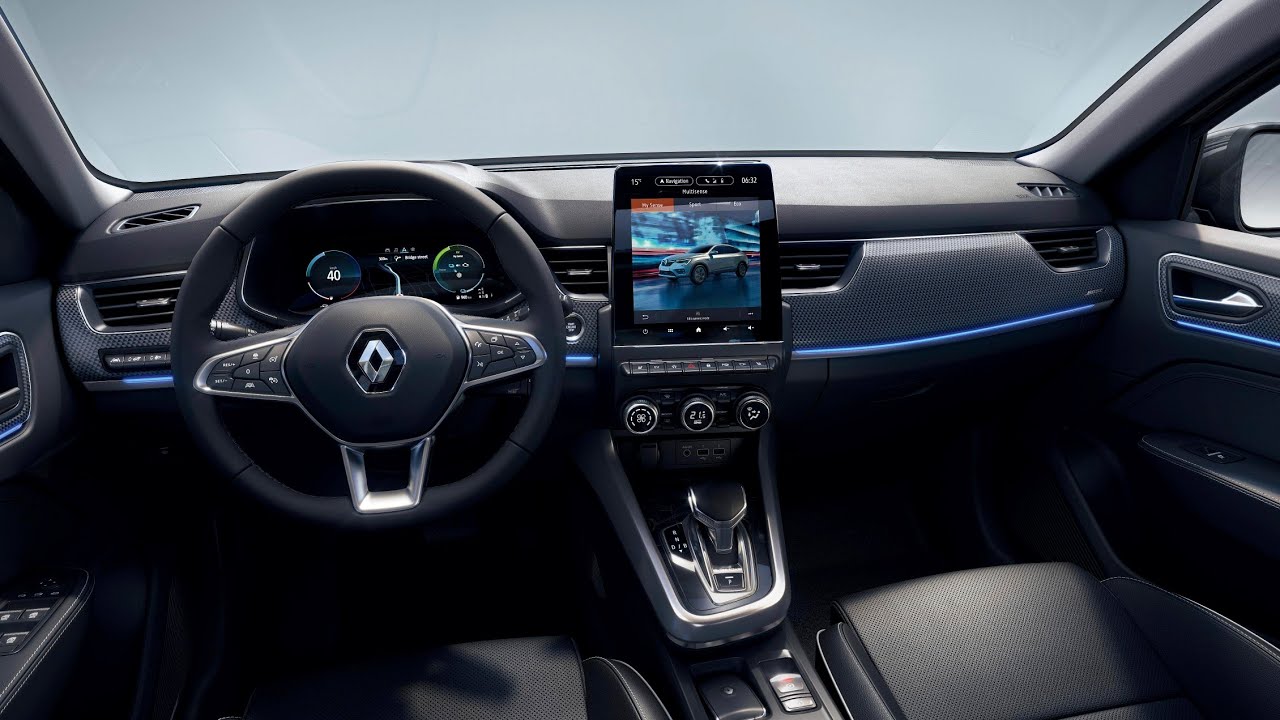Στο εσωτερικό του έχει δανειστεί στοιχεία από τα Clio και Captur για μια εικόνα που είναι οικεία στο μάτι, με ορισμένες όμως νέες προσθήκες. Μία από αυτές δεν είναι η κάθετα τοποθετημένη οθόνη αφής, σε στυλ τάμπλετ για μεγαλύτερη ευκολία χρήσης (που σύμφωνα με τη Renault οφείλεται στην εξοικείωση μας με τα κινητά τηλέφωνα). Ανάλογα την έκδοση έχει διαγώνιο 7 ή 9,3 ίντσες και τρέχει το πρόσφατο λειτουργικό σύστημα της εταιρείας με τα εύχρηστα μενού, τη παραμετροποίηση με widgets, την ενσωμάτωση πληροφοριών Google στο σύστημα πλοήγησης κ.α.