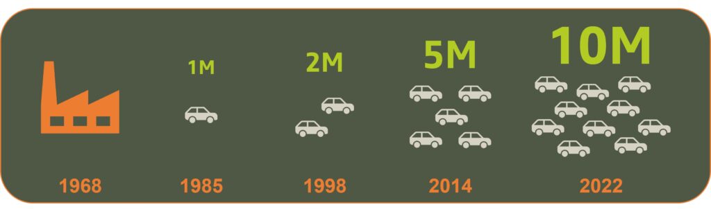 Την Τετάρτη 20 Απριλίου 2022, στο εργοστάσιο του Mioveni στη Ρουμανία, ένα Duster Extreme L.E. σε χρώμα Urban Grey, έβγαλε μια αναμνηστική και άκρως συμβολική φωτογραφία ακριβώς μπροστά στη γραμμή συναρμολόγησης. Πρόκειται για το 10.000.000στο όχημα της Dacia που παράγεται από τη γέννηση της μάρκας.
