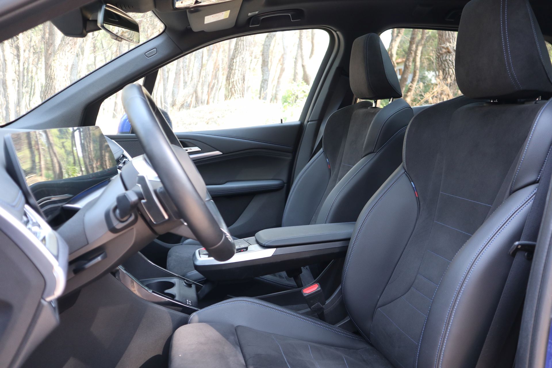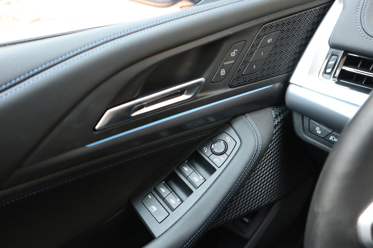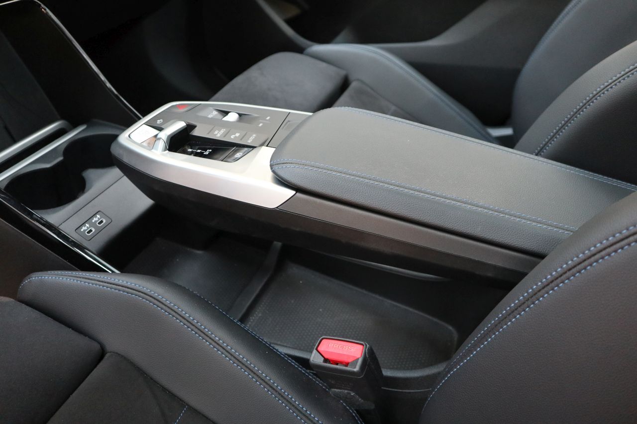 Εσωτερικά υπάρχει ένας εντελώς νέος κόσμος, αυτός που για πρώτη φορά είδαμε στην iX και πιο πρόσφατα στην παρουσίαση της επερχόμενης X1. Εδώ το ταμπλό είναι οριζοντιωμένο και σχετικά χαμηλό για να προσφέρει καλή ορατότητα, με ξεχωριστούς μακρόστενους αεραγωγούς στη πλευρά του συνοδηγού και νέας σχεδίασης σπορ τιμόνι ενώ το παραδοσιακό “σετ” οθονών για τον οδηγό και το σύστημα πολυμέσων αντικαθιστά κάτι που η BMW ονομάζει Curved Display. Το κυρτό αυτό πάνελ ενσωματώνει και τις δύο οθόνες με τρόπο που τις κάνει να φαίνονται ενωμένες πίσω από μια γυάλινη επιφάνεια, με μόνη σημείωση ότι υπό ορισμένες γωνίες είναι ορατά τα σχετικά μεγάλα περιθώρια γύρω από τις οθόνες.