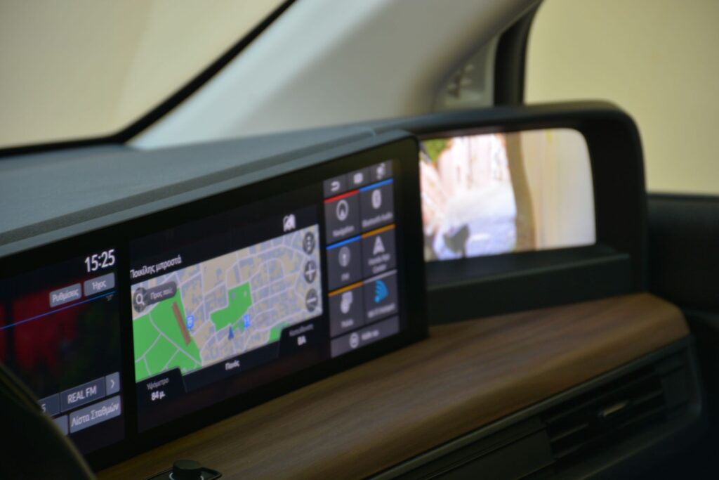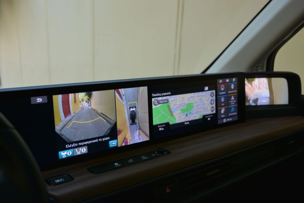 Τα παιχνίδια συνεχίζουν όταν είσαι σταθμευμένος αφού πέρα από το USB υπάρχει θύρα HDMI και πρίζα 230V. Με άλλα λόγια μπορείς να συνδέσεις ότι ηλεκτρική συσκευή θέλεις για να τη φορτίσεις ή να τη χρησιμοποιήσεις. Ακόμα και Playstation 5 το οποίο μπορείς να προβάλεις σε μια από τις δύο κεντρικές οθόνες εάν το συνδέσεις κατάλληλα. Αξίζει να σημειωθεί ότι τα USB με τη σύνδεση καλωδίου ταχυφορτίζουν ένα κινητό τηλέφωνο και ότι δεν υπάρχει κάποια θέση επαγωγικής φόρτισης ούτε σαν προαιρετικός εξοπλισμός. Το σύστημα υποστηρίζει επίσης την ασύρματη σύνδεση με Android Auto ή Apple Car Play και δέχεται ασύρματες ενημερώσεις.