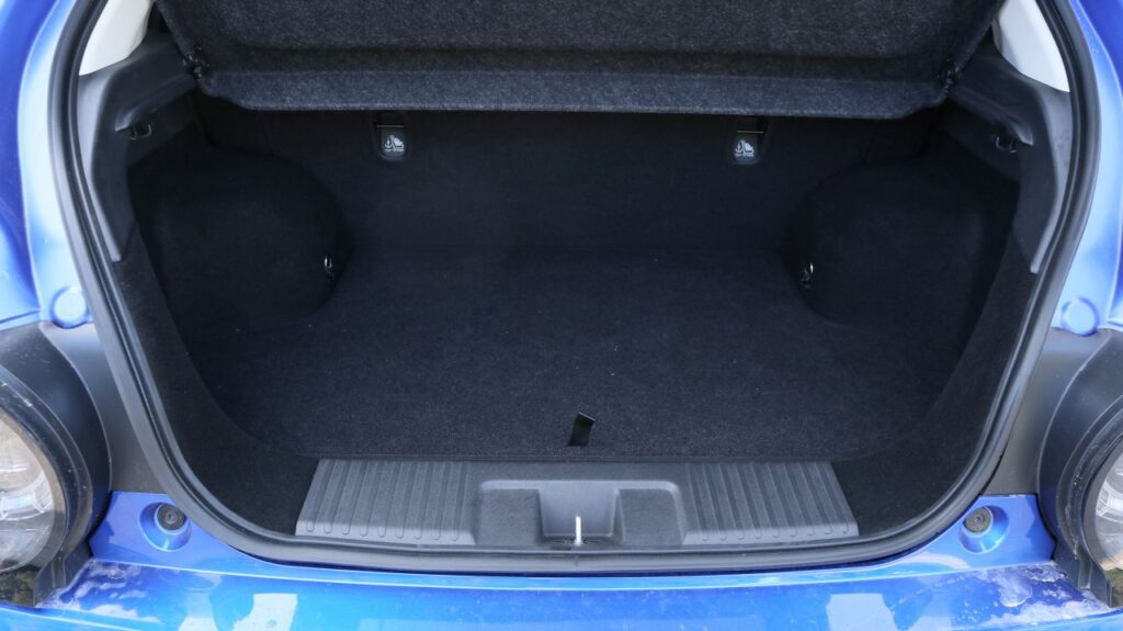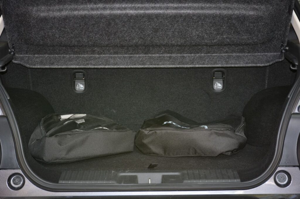 Τα μπροστινά θερμαινόμενα καθίσματα δεν προσφέρουν κάτι περισσότερο από ικανοποιητική πλευρική στήριξη είναι όμως πολύ αναπαυτικά, έχουν καλή υποστήριξη για τη μέση και ιδανικές ρυθμίσεις για μια σωστή και άνετη θέση οδήγησης. Οι πίσω επιβάτες, που σύμφωνα με τις ζώνες περιορίζονται στους δύο, θα απολαύσουν ένα ενιαίο κάθισμα, ικανοποιητικό χώρο για το κεφάλι όπως και απόσταση από τα μπροστινά καθίσματα. Αυτό που ξεχωρίζει είναι τα τέσσερα LED σποτάκια στην οροφή με τα κουμπιά ενεργοποίησης στις πλαϊνές κολώνες μεταφέροντας και πίσω το “στυλ σαλονιού” με το πίσω ενιαίο κάθισμα που παραπέμπει σε διθέσιο καναπέ και τα φώτα οροφής. Δεν λείπουν οι θύρες ISOFIX και το ικανοποιητικό άνοιγμα στις πίσω πόρτες για τοποθέτηση παιδικών καθισμάτων όμως το άνοιγμα των πίσω παραθύρων είναι σχετικά μικρό. Σε ότι αφορά το χώρο αποσκευών αυτός περιορίζεται στα 171 λίτρα και μόνο σε σακούλες από ψώνια ή τσάντες. Για μεταφορά μεγαλύτερων αντικείμενων πρέπει οπωσδήποτε να αναδιπλωθεί η μονοκόμματη πλάτη των πίσω καθισμάτων ενώ πάντα τα καλώδια φόρτισης θα “κλέβουν” μερικά από τα λιγοστά διαθέσιμα λίτρα.
