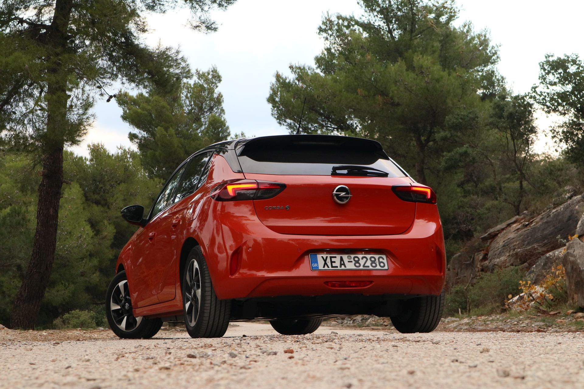 Το ηλεκτρικό Corsa ανήκει στη δεύτερη κατηγορία και για να μπορέσει κάποιος στο δρόμο να το ξεχωρίσει ως ηλεκτρικό, θα πρέπει να είναι πολύ καλά διαβασμένος καθώς οι διαφορές στην εμφάνιση μετριούνται στα δάχτυλα του ενός χεριού. Εδώ δεν υπάρχει κλειστή μάσκα και αεραγωγοί, ιδιαίτερα χρώματα και “κλειστές ζάντες”. Οι τροχοί είναι διαφορετικοί και λίγο πιο αεροδυναμικοί όμως δεν κάνουν “μπαμ” όπως συμβαίνει σε πολλά νέα ηλεκτρικά αυτοκίνητα, όπως π.χ. στο αμιγώς ηλεκτρικό Mini Cooper SE. Από ‘κει και πέρα τα μόνο στοιχεία που μπορούν να “προδώσουν” την ηλεκτρική του ταυτότητα είναι τα σηματάκια “e” στις κολώνες των παραθύρων, το λογότυπο “Corsa-e” στο πίσω μέρος και η απουσία της εξάτμισης.