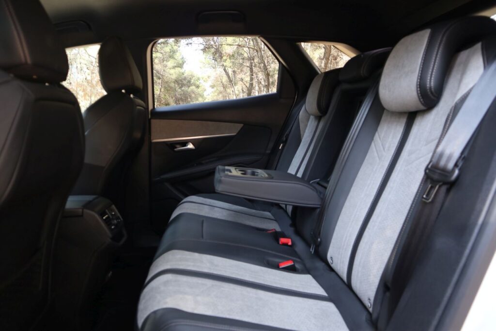 Το πίσω μέρος του 3008, αν και δεν είναι το μεγαλύτερο στη κατηγορία, προσφέρει αρκετά καλούς χώρους και πολλές ανέσεις για τέσσερις ή πέντε επιβάτες με τις λογικές παραχωρήσεις. Πολύ σημαντικό βέβαια το γεγονός ότι ο μεσαίος δεν θα έχει πρόβλημα με τα πόδια του αφού το κεντρικό τούνελ είναι εξαιρετικά χαμηλό και το πάτωμα σχεδόν επίπεδο λες και είναι κάποιο αμιγώς ηλεκτρικό μοντέλο. Στην Plug-in υβριδική έκδοση όμως το πάτωμα είναι λίγο πιο ψηλά και έτσι η απόσταση από το κάτω μέρος του καθίσματος είναι μειωμένη και οι ψηλοί επιβάτες θα έχουν μια κάπως πιο άβολη θέση στα πόδια τους. Οι γονείς μπορούν να μένουν ήσυχοι για την ασφάλεια των παιδιών τους με την εύκολη τοποθέτηση παιδικών καθισμάτων στα σημεία IsoFix και το καλό άνοιγμα που έχουν οι πίσω πόρτες.