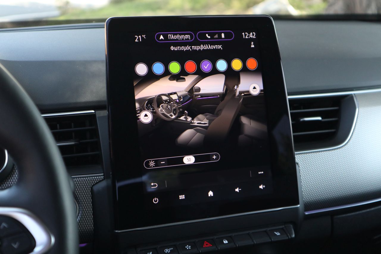 Η έκδοση Dynamic με το πληρέστατο εξοπλισμό ενσωματώνει και τη μεγάλη οθόνη 9,3″ (7″ στη βασική Expression) Easy Link με το γνώριμο infotaiment που διαθέτει διαμορφώσιμα widgets στην αρχική οθόνη και υποστηρίζει υπηρεσίες της Google μέσω ενσωματωμένης sim. Αυτές αφορούν στους στάνταρ χάρτες του συστήματος πλοήγησης, που μπορεί να μην είναι Google Maps αλλά αντλούν πληροφορίες από αυτά για σημαντικές τοποθεσίες ενώ εμφανίζουν και τις τιμές στα βενζινάδικα (ότι πρέπει για την εποχή που διανύουμε). Ανάλυση και απόκριση είναι σε καλά επίπεδα, τα μενού εύχρηστα και τα Android Auto/Apple Car Play διαθέσιμα ωστόσο μόνο με ενσύρματη σύνδεση. Υπάρχουν πάντως δύο κανονικές θήρες USB εμπρός αλλά και μια θήρα AUX που σπανίζει στα νέα μοντέλα ενώ η θήκη στο κάτω μέρος του ταμπλό υποστηρίζει ασύρματη φόρτιση για Smartphone.