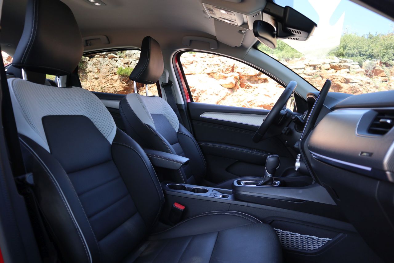 Εσωτερικά η εικόνα είναι ακόμα πιο οικία αφού πολλά μέρη είναι όμοια με αυτά ενός Captur ή Clio. Το ταμπλό βέβαια είναι διαφορετικό και έχει μεγάλα επίπεδα μέρη τα οποία καλύπτονται από δύο διαφορετικές διακοσμητικές επενδύσεις ανάλογα την έκδοση. Η ποιότητα στο σύνολο της είναι πολύ καλή, όχι τόσο ώστε να το χαρακτηρίσουμε Premium, αλλά σίγουρα το φινίρισμα είναι αρκετά προσεγμένο με μαλακά πλαστικά στο πάνω μέρος του ταμπλό και στις πόρτες. Υπάρχουν επίσης επενδύσεις από συνθετικό δέρμα στα υποβραχιόνια ενώ ως προαιρετικός εξοπλισμός με το πακέτο Winter Pack διατίθενται δερμάτινα καθίσματα τα οποία είναι θερμαινόμενα (και το τιμόνι) με ηλεκτρικές ρυθμίσεις. Τα καθίσματα είναι πολύ άνετα με καλή στήριξη για τη μέση αλλά και πλευρική ενώ η θέση οδήγησης είναι ψηλή για να προσφέρει καλή ορατότητα και “SUV” αίσθηση.