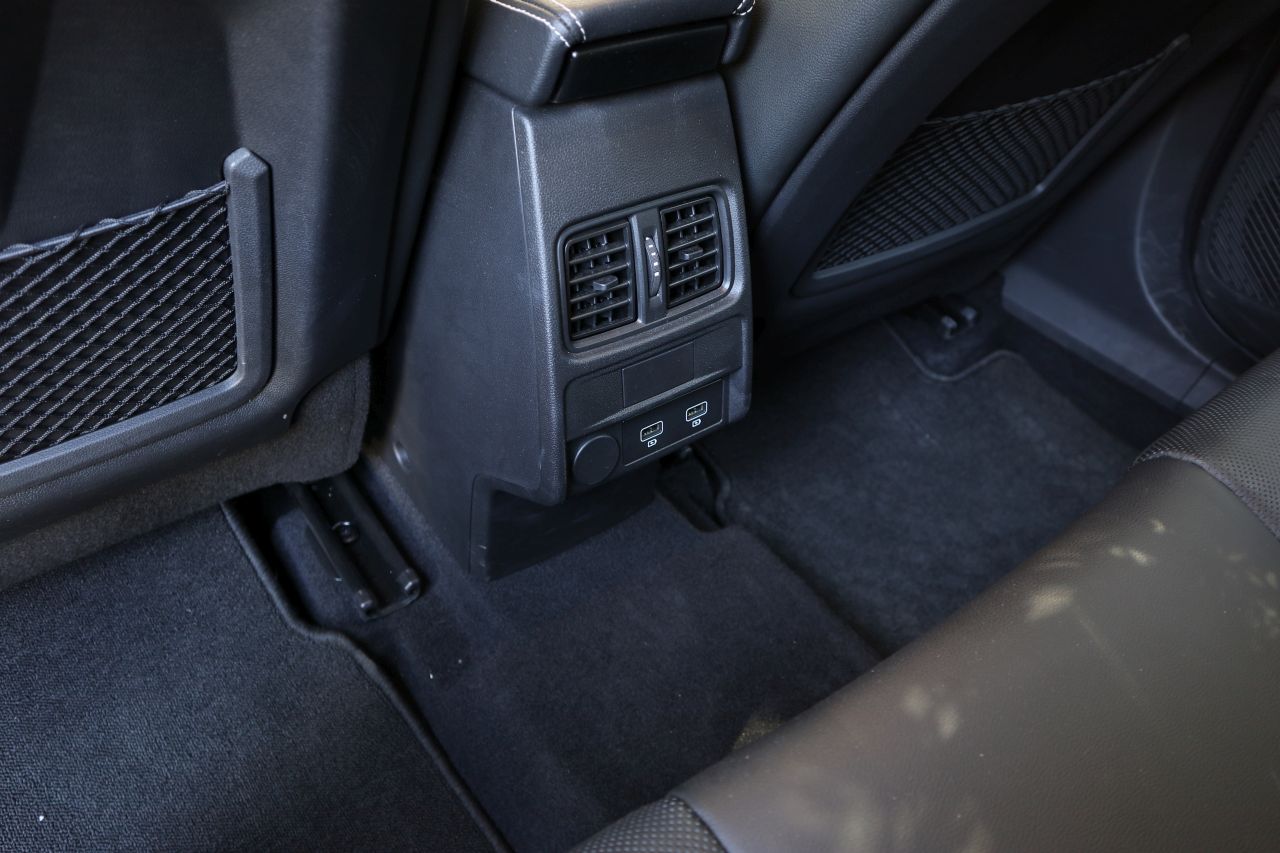 Ο χώρος και η απόσταση από τα μπροστινά καθίσματα και από την οροφή στο πίσω μέρος αντίστοιχα είναι από τις κορυφαίες στη κατηγορία του. Ειδικότερα ο “αέρας” για τα κεφάλια είναι εντπωσιακός δεδομένης της κουπέ γραμμής που έχει, όμως ακόμα και ψηλοί επιβάτες θα κάτσουν με άνεση ενώ ο μεσαίος δεν θα παραπονεθεί για τα πόδια του μιας και το κεντρικό τούνελ είναι σχετικά χαμηλό. Οι πίσω επιβάτες έχουν στη διάθεση τους 2 USB, αεραγωγούς από τον αυτόματο κλιματισμό, μια πρίζα 12V και ένα κεντρικό υποβραχιόνιο με ποτηροθήκες.