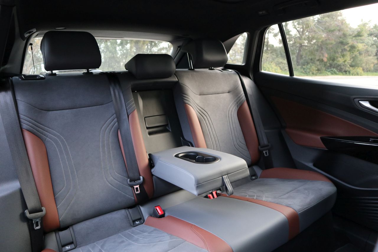 Για τους πίσω επιβάτες δεν χρειάζονται πολλά λόγια. Το μεταξόνιο δεν διαφοροποιείται από αυτό του ID.3 όμως η διαφορά στην απόσταση από τα μπροστινά καθίσματα είναι εντυπωσιακή. Αρκετά καλός είναι ο αέρας για τα κεφάλια ενώ το επίπεδο πάτωμα επιτρέπει σε τρείς επιβάτες να ταξιδέψουν άνετα πίσω. Εάν περιοριστούν στους δύο, το υποβραχιόνιο έχει και ποτηροθήκες ενώ τα μπροστινά καθίσματα έχουν στις πλάτες ειδικές θήκες για κινητά τηλέφωνα και ρυθμίσεις για τον τριζωνικό κλιματισμό. Δύο θύρες USB type c (άλλες δύο μπροστά) και τα παράθυρα που κατεβαίνουν ολόκληρα προσφέρουν επιπλέον άνεση.
