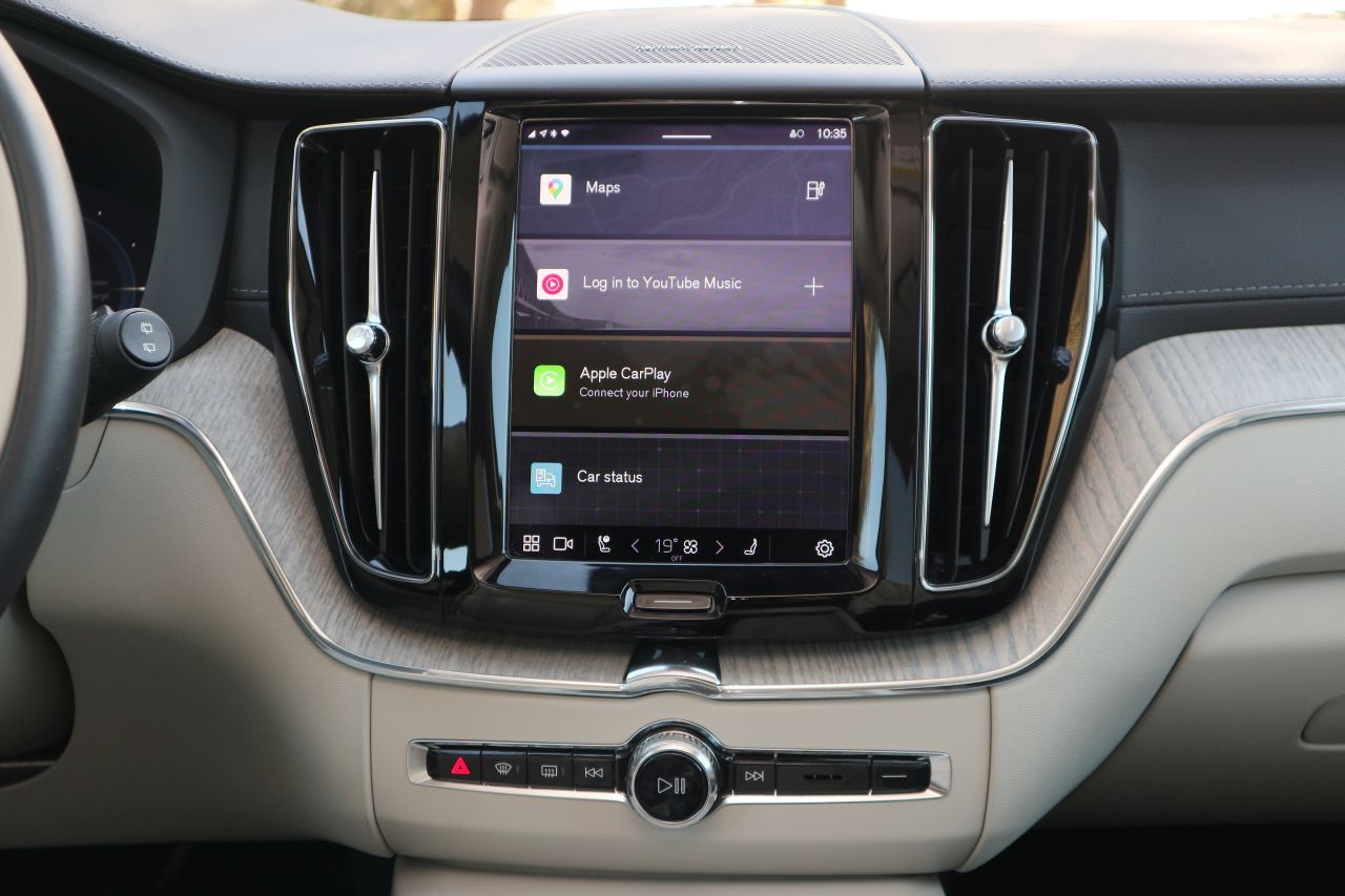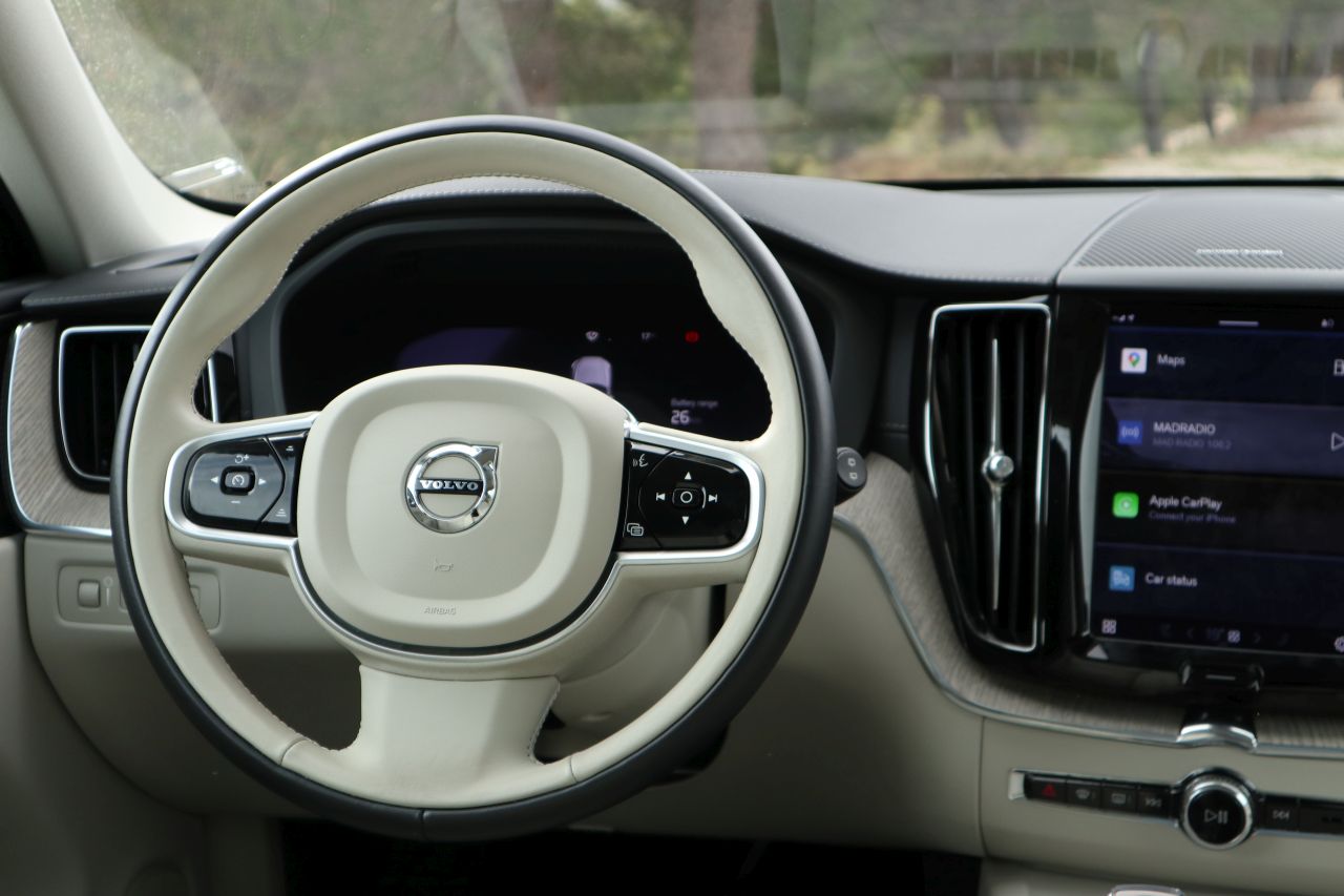 Η μεγαλύτερη αλλαγή όμως κρύβεται στις δύο οθόνες όπου έχουν ενημερωθεί με τη τελευταία έκδοση του λειτουργικού συστήματος της Volvo. Αυτό βασίζεται στο Android 11 και σε συνεργασία με τη Google πλέον έχει εκτεταμένες λειτουργίες και περισσότερες εφαρμογές. Η κάθετα τοποθετημένη κεντρική οθόνη αφής 9″ δεν είναι τεράστια όπως σε πολλά νέα μοντέλα, είναι όμως αρκετά μεγάλη και το κυριότερο, είναι εξαιρετική τόσο στην ανάλυση, όσο και στην απόκρισή της. Το σύστημα πλοήγησης αποτελείται από τα κορυφαία Google Maps και διαθέσιμο είναι το Google Play για εγκατάσταση εφαρμογών όπως το Spotify, το Google Music και άλλες εφαρμογές Steraming ή πληροφοριών ενώ σύντομα θα προστεθεί και η κανονική έκδοση του Youtube για αναπαραγωγή βίντεο όταν το αυτοκίνητο είναι σταθμευμένο. Ακόμα μια προσθήκη στο σύστημα αφορά στο απαραίτητο Apple CarPlay, το οποίο συνδέεται φυσικά ασύρματα, όπως ασύρματα γίνονται και οι ενημερώσεις. Οι ρυθμίσεις είναι πολλές, ωστόσο τα εικονίδια των μενού και η γραμματοσειρά παραμένουν μικρά σε μέγεθος δυσκολεύοντας τον εν κινήσει χειρισμό, ειδικότερα σε όσα έχουν να κάνουν με τις λειτουργίες που επηρεάζουν τη συμπεριφορά του στο δρόμο. Ο κλιματισμός πάντως, παρά τα ενσωματωμένα στην οθόνη αφής χειριστήρια, δεν θα δυσκολέψει ενώ διαθέσιμο είναι και το Google Assistant που όπως όλοι γνωρίζουμε από τα κινητά μας τηλέφωνα, λειτουργεί πολύ καλά και κατανοεί καθημερινές φράσεις. Για τον κλιματισμό να αναφέρουμε ότι έχει ενσωματωθεί και ένα σύστημα που καθαρίζει τον αέρα από το 95% των βλαβερών αιωρούμενων σωματιδίων PM 2,5, με την ένδειξη να είναι live στο μενού.