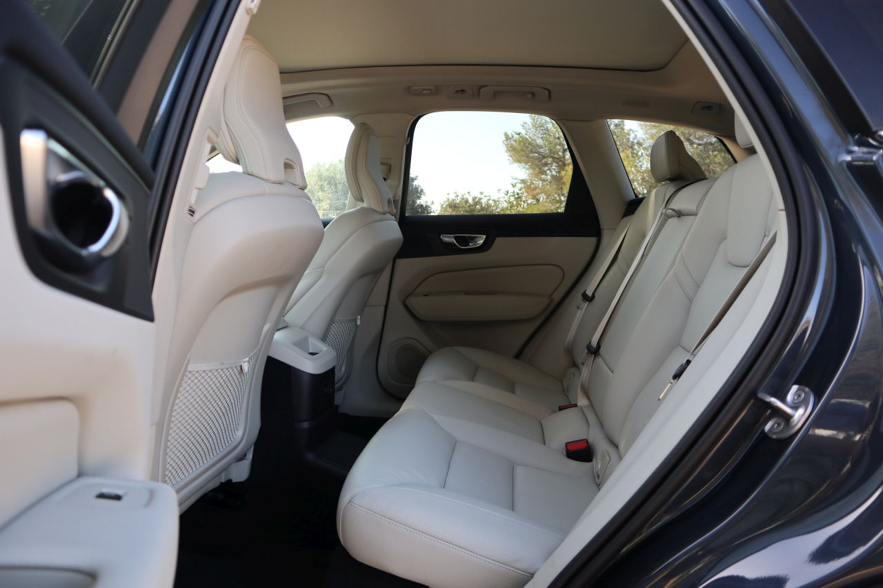 Στο πίσω μέρος δεν υπάρχει καμία αλλαγή. Έως τρείς ενήλικες μπορούν να καθίσουν σχετικά άνετα, με τον τρίτο να ενοχλείται λίγο από το ψηλό τούνελ της τετρακίνησης. Θήκες ή usb υπάρχουν και για αυτούς τους επιβάτες ενώ οι αεραγωγοί του κλιματισμού είναι ενσωματωμένοι έξυπνα στις μεσαίες κολόνες. Δύο επιβάτες εννοείται πως θα κάτσουν πολύ άνετα και αναπαυτικά, με τα καθίσματα να προσφέρουν κάπως ξαπλωτή θέση καθώς δεν είναι ανακλινόμενα. Τα IsoFix για την εύκολη τοποθέτηση καλύπτονται και πίσω από το κεντρικό υποβραχιόνιο υπάρχει Ski-Hatch για αυτούς που επισκέπτονται συχνά τα χιονοδρομικά κέντρα. Ο χώρος αποσκευών παραμένει στα 468 λίτρα, είναι δηλαδή λίγο μικρότερος από τις Mild Hybrid εκδόσεις του XC60, έχει όμως μεγάλο και τετραγωνισμένο άνοιγμα, επίπεδο σημείο φόρτωσης, έξυπνα αναδιπλούμενη εταζέρα και ηλεκτρική πέμπτη πόρτα με hands free λειτουργία. Ο χώρος κάτω από το πάτωμα δεν επαρκεί για όλα τα καλώδια αλλά οι θήκες και τα σημεία δεσίματος είναι αρκετά για να τοποθετηθούν μέσα σε τσάντες και να στηριχθούν, αντίστοιχα ενώ με την αναδίπλωση τον καθισμάτων φτάνει τα 1.395 λίτρα.