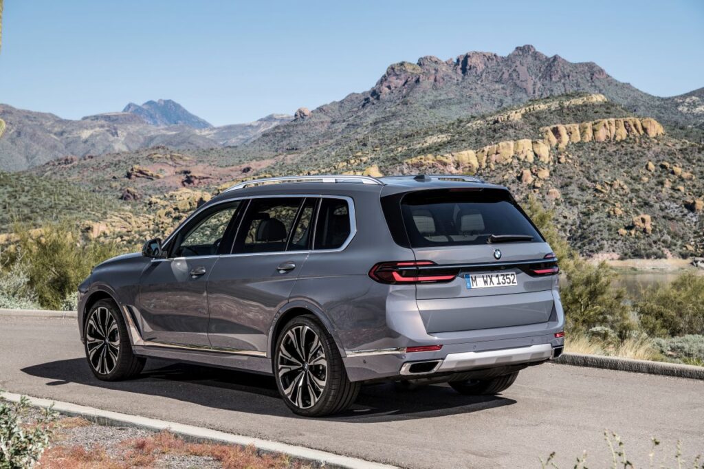 Στο πίσω μέρος, τονίζεται το προοδευτικό στυλ των εξαιρετικά λεπτών φωτιστικών σωμάτων, που τώρα έχουν τρισδιάστατη σμιλεμένη μορφή. Η κομψή χρωμιωμένη μπάρα που συνδέει τα πίσω φωτιστικά σώματα της νέας BMW X7 περιβάλλεται από ένα πολυτελές κρυστάλλινο κάλυμμα.