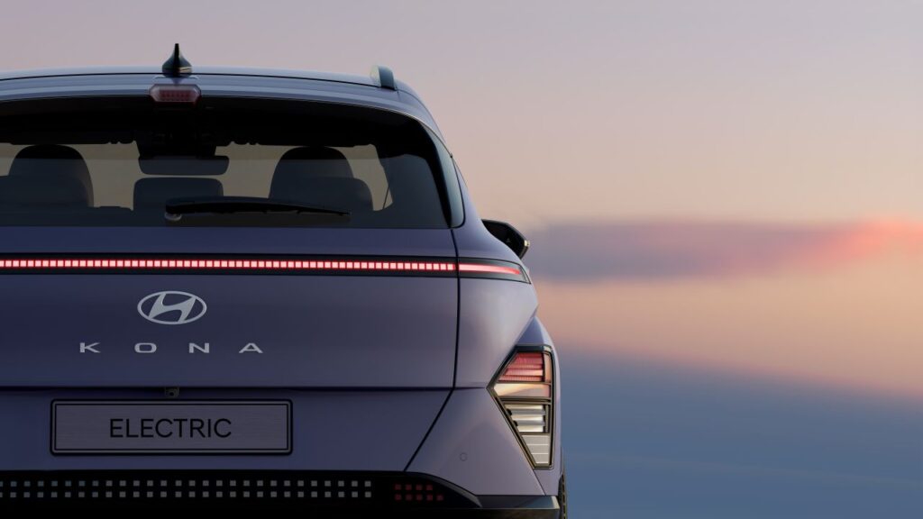 Το νέο KONA είναι γεμάτο με παραμετρικές επιφάνειες. Η απότομη διαγώνια πτυχή των πλαινών μερών συνδέει το σατινέ χρώμιο της γραμμής της ζώνης με την αεροτομή, δημιουργώντας ένα περίγραμμα που τυλίγεται γύρω από ολόκληρο το όχημα. Το πίσω μέρος διαθέτει μια ακόμη Seamless Horizon Lamp καθώς και ένα ψηλά τοποθετημένο φωτιστικό stop (HMSL) που είναι ενσωματωμένο άψογα στο σατινέ χρώμιο του σπόιλερ.
