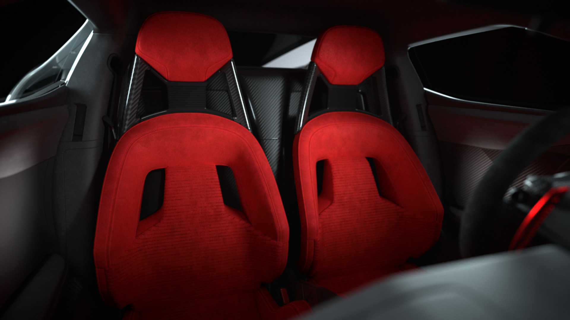 Το απέριττο οδηγοκεντρικό εσωτερικό φέρει μοναδικό εξοπλισμό, όπως μαύρη επένδυση από Alcantara® suede στο ταμπλό, την οροφή και το τιμόνι, ενώ τα κόκκινα paddles του κιβωτίου και τα κόκκινα σπορ καθίσματα από Alcantara προσδίδουν μοναδικές αντιθέσεις.