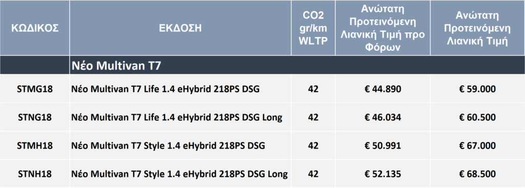 Οι τιμές του νέου Multivan eHybrid έχουν ως εξής: