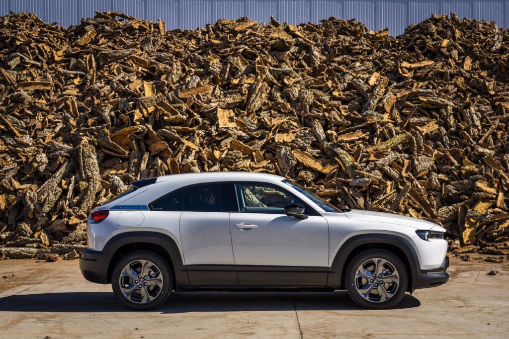 Επιπλέον, το μοντέλο διαθέτει μια σειρά από καινοτόμα και βιώσιμα υλικά, από δέρμα vegan έως και ίνες που είναι κατασκευασμένες από υλικό που αναπνέει που παράγεται από ανακυκλώσιμα μπουκάλια PET και φυσικά, φελλό. “Τοποθετήσαμε φελλό εκεί που συνήθως χρησιμοποιείται καουτσούκ στο αυτοκίνητο: Στην κεντρική κονσόλα και στις εσωτερικές χειρολαβές των θυρών. “Αυτό προσδίδει την οπτική και απτική ζεστασιά της φύσης στο όχημα,” λέει ο Jo Stenuit, ο οποίος είναι Design Director στη Mazda Motor Europe. Όμως η εμφάνιση δεν είναι ο μόνος λόγος για τον οποίον ο φελλός αναδείχθηκε ως το υλικό που ξεχωρίζει στο MX-30. Συγκριτικά με το καουτσούκ, ο φελλός είναι μια πιο βιώσιμη και εξαιρετικά λειτουργική επιλογή σε περισσότερα από ένα θέματα.