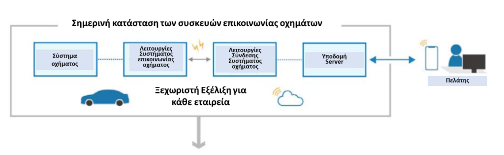 Στα πλαίσια του προγράμματος CASE (Connected, Autonomous/Automated, Shared, and Electric – συνδεδεμένο, αυτόνομο/αυτοματοποιημένο, κοινόχρηστο και ηλεκτρικό), το οποίο προκαλεί σημαντικούς μετασχηματισμούς στην αυτοκινητοβιομηχανία, πραγματοποιείται ταχύτατη εξέλιξη στον τομέα της δικτύωσης σε σχέση με τις παραμέτρους των επικοινωνιών και της τεχνολογίας, συμπεριλαμβανομένων των υπηρεσιών cloud, IoT, big data και AI. Οι μεμονωμένοι κατασκευαστές αυτοκινήτων εξελίσσουν ανεξάρτητα ο καθένας, συσκευές επικοινωνίας αυτοκινήτων και κάθε εταιρεία υιοθετεί μια διαφορετική προσέγγιση και δαπανά η κάθε μία ξεχωριστά σημαντικούς πόρους.