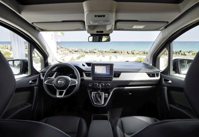 Στο εσωτερικό, το Townstar EV Combi συνεχίζει να προσφέρει τεχνολογία αιχμής, με εσωτερικό που αναβαθμίζει την εμπειρία των επιβατών. Διαθέτοντας ένα μοναδικό φινίρισμα που χαρακτηρίζει ένα Nissan EV, ο ψηφιακός πίνακας οργάνων των 10 ιντσών βοηθά τον οδηγό να εστιάσει στις απαραίτητες πληροφορίες και μειώνει την απόσπαση της προσοχής, ενώ η κεντρική κονσόλα διαθέτει ασύρματη φόρτιση για smartphone. Το τελευταίο μοντέλο της Nissan διαθέτει προαιρετικό διζωνικό σύστημα κλιματισμού, θερμαινόμενο παρμπρίζ, θερμαινόμενο τιμόνι, όπως και θερμαινόμενα μπροστινά καθίσματα, καθώς και αεραγωγούς πίσω για βελτιστοποίηση της άνεσης στην καμπίνα, για όλους τους επιβάτες.