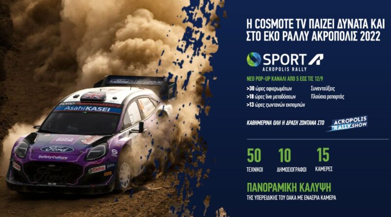 Η ώρα του EKO Ράλλυ Ακρόπολις 2022 πλησιάζει κι από τις 5 έως και τις 12 Σεπτεμβρίου το pop-up κανάλι COSMOTE SPORT ACROPOLIS RALLY θα γίνει για μια ακόμη φορά ο απόλυτος προορισμός για τους λάτρεις του «Ράλλυ των Θεών». Με περισσότερες από 30 ώρες ειδικών αφιερωμάτων, 18 ώρες live μεταδόσεων όλης της αγωνιστικής δράσης του τετραημέρου, 13 ώρες ζωντανών εκπομπών, συνεντεύξεις πρωταγωνιστών και πλούσια ρεπορτάζ, το μόνο που θα λείψει από τους τηλεθεατές της COSMOTE TV είναι το χώμα από τις ειδικές διαδρομές.